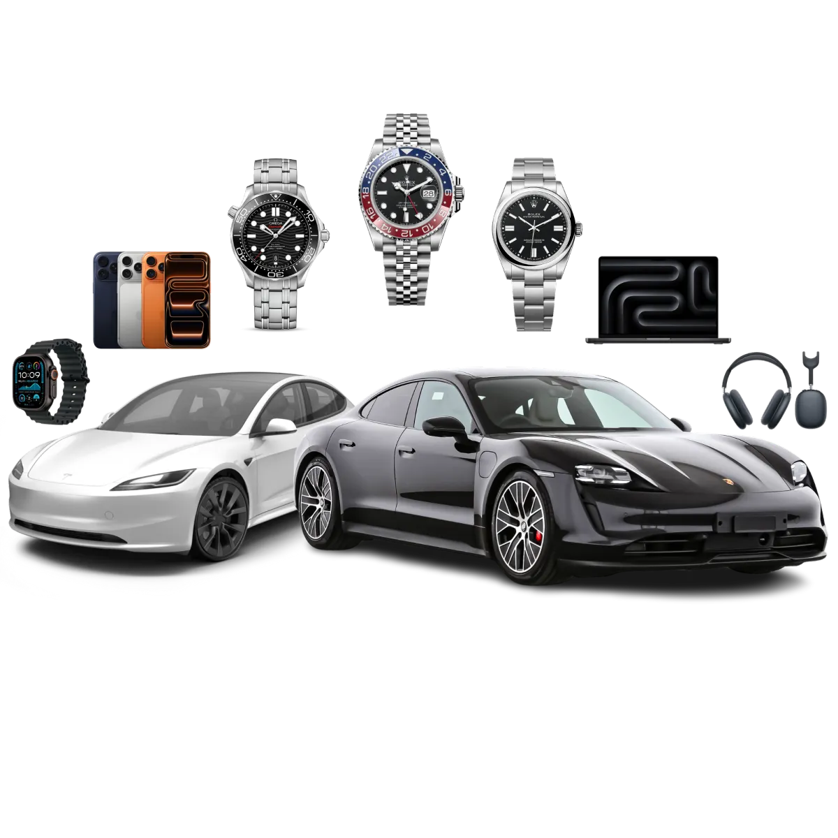 Desde un iPhone 17 Pro Max... Un Rolex GMT-Master II... Un Tesla Model 3 Performance... hasta el Porsche de tus sueños.